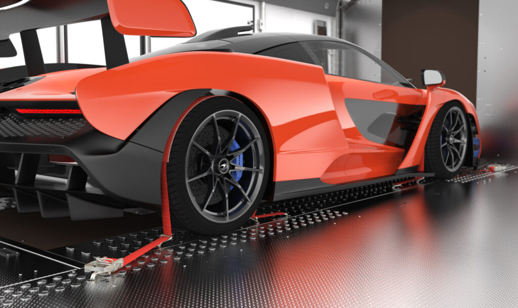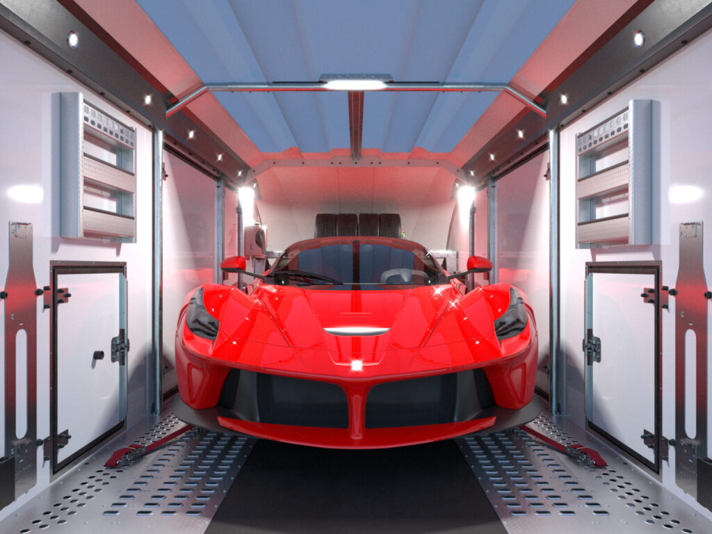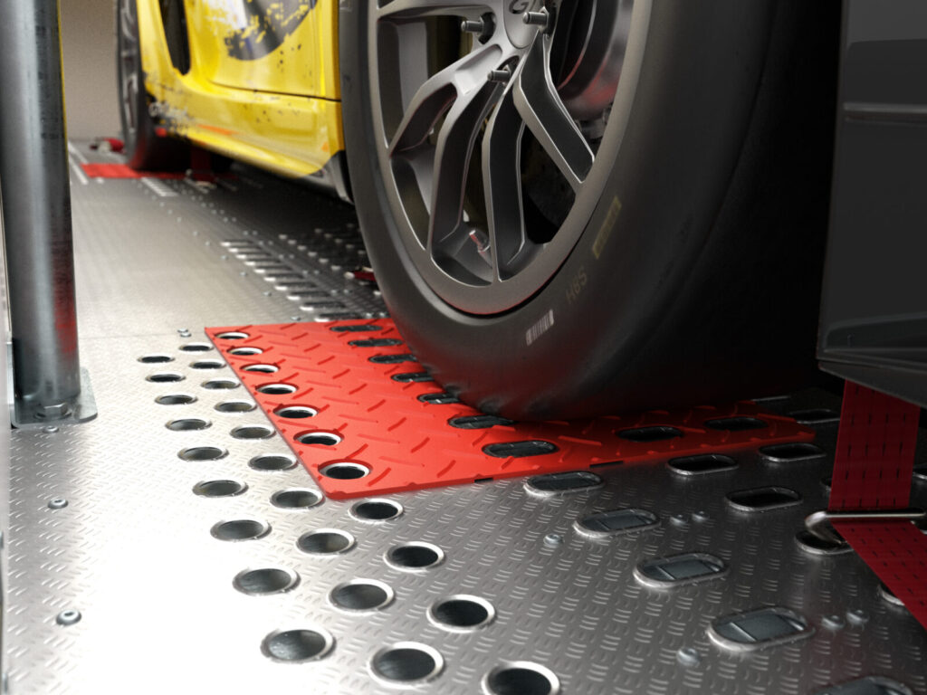 Dank des sehr flachen Auffahrwinkels und zusätzlichen RaceRamps können auch Fahrzeuge mit geringer Bodenfreiheit problemlos verladen werden.